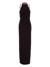 halterneck backless dress Highlights - Dark grape purple - Two-tone design - Stretch-crepe texture - Halterneck - Backless design - Sleeveless - Strap detailing - Straight hem Made in Italy Composition Outer: Viscose 94%, Lycra 6% Lining: Bio Acetate 65%, Polyester 35% Washing instructions Read Manufacturer Guidelines