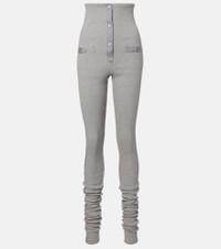 These stirrup leggings from The Attico are crafted from a stretchy cotton jersey, presented in a ribbed-knit melange finish. The design is made for a high-rise fit, detailed with snap buttons at the front and on the pockets. Product Details - Material: 98% cotton, 2% elastane - Care instructions: machine wash at 30 degrees - Made in Portugal - Designer color name: Melange Grey - Item color: gray - Pockets: snap-buttoned pockets - Closure: snap-buttoned front - Item number: P01107608 Size & Fit - True to size - Sizing adapted to taller women - Stretchy fabric - Skinny leg - High-waisted - The model seen in the picture is 178cm-5'10" and wearing a size IT 40