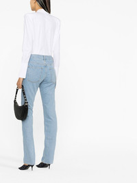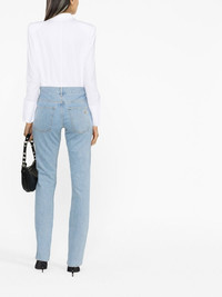 high-rise slim-fit jeans The Attico presents a pair of classic straight-leg jeans here. Crafted from recognisable light-blue cotton, the pair are finished with a high rise for a timeless look. Made in Italy Composition Outer: Cotton 100% Lining: Polyester 65%, Cotton 35% SIZE & FIT Model measurements Height 5 ft 10 in(1.77 m) Bust/Chest 32.67 in(83 cm) Hips 35.43 in(90 cm) Waist 23.62 in(60 cm) FittingInformation This piece fits true to size. We recommend you get your regular size Cut for a slim fit Made with a mid-weight non-stretch fabric Washing instructions Hand Wash