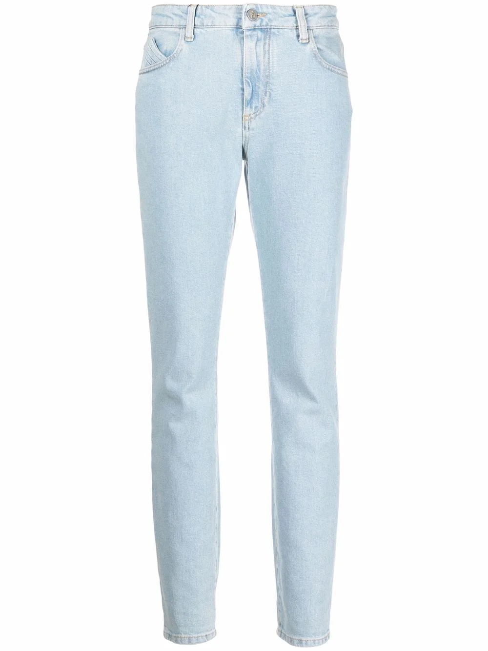 high-rise straight-leg jeans blue stretch-cotton light wash belt loops front button and zip fastening classic five pockets straight leg Made in Italy Composition Outer: Cotton 98%, Spandex/Elastane 2% Lining: Polyester 65%, Cotton 35% SIZE & FIT Model measurements Height 5 ft 9 in(1.76 m) Bust/Chest 31.1 in(79 cm) Hips 35.43 in(90 cm) Waist 22.83 in(58 cm) FittingInformation This piece fits true to size. We recommend you get your regular size Cut for a slim fit Made with a mid-weight stretch fabric Washing instructions Hand Wash
