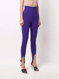 high-waisted stirrup leggings prism violet stretch-design super-skinny cut stirrup cuffs high-waisted embroidered logo to the front concealed side zip fastening Made in Italy Composition Viscose 65%, Polyamide 30%, Spandex/Elastane 5% SIZE & FIT Model measurements Height 5 ft 10 in(1.78 m) Bust/Chest 33.07 in(84 cm) Hips 35.82 in(91 cm) Waist 25.98 in(66 cm) Measurement HIPS 28.34 in(72 cm) WAIST 22.83 in(58 cm) FittingInformation This piece fits true to size. We recommend you get your regular size Cut for a close fit Made with a mid-weight stretch fabric Washing instructions Machine Wash