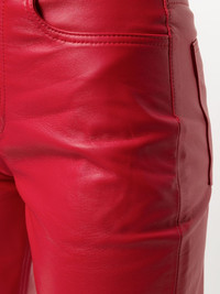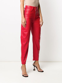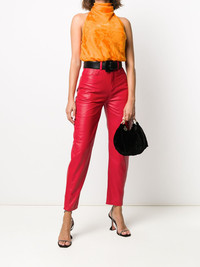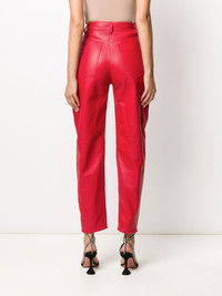 high-waisted tapered trousers Red lambskin high-waisted tapered trousers from The Attico featuring a high rise, a waistband with belt loops, a front button fastening, a five pocket design, a tapered leg and a cotton lining. Imported Composition Lining: Cotton 100%, Viscose 100% Outer: Lamb Skin 100% SIZE & FIT Model measurements Height 5 ft 9 in(1.74 m) Bust/Chest 32.28 in(82 cm) Hips 35.82 in(91 cm) Waist 24.01 in(61 cm) Measurement INSIDE LEG 29.13 in(74 cm) WAIST 26.37 in(67 cm) HIPS 35.82 in(91 cm) FittingInformation This piece fits true to size. We recommend you get your regular size Designed to be loose over the leg with a fitted waist and hem Made with a mid-weight non-stretch fabric Washing instructions Specialist Cleaning