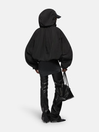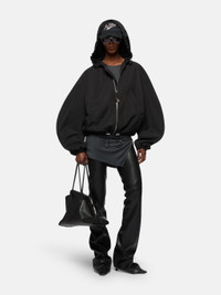 Bomber in black nylon with hood, patch pockets and logo metal zip puller. Made in Italy. Style 250WCB00076PLL001AA100 SIZE & FIT The model is wearing a size 40 and her height is 69,6 in, bust 30,7 in, waist 23,2 in, hips 34,6 in - height 177 cm, bust 78 cm, waist 59 cm, hips 88 cm. Regular fit. We recommend taking your true size. DETAILS Main Material: 100% polyester, lining: 100% viscose