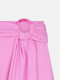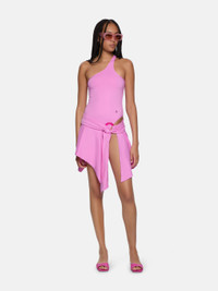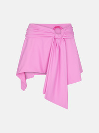 Asymmetrical mini skirt in hot pink lycra with drapes at the waist and transparent pink logo ring. Style 233WBB75PA15266 SIZE & FIT The model is wearing a size S and her height is 181 cm, bust 83 cm, waist 62 cm, hips 89 cm. Regular fit. We recommend taking your true size. DETAILS Main fabric: 82% polyamid 18% elastane, lining: 84% polyamid 16% elastane