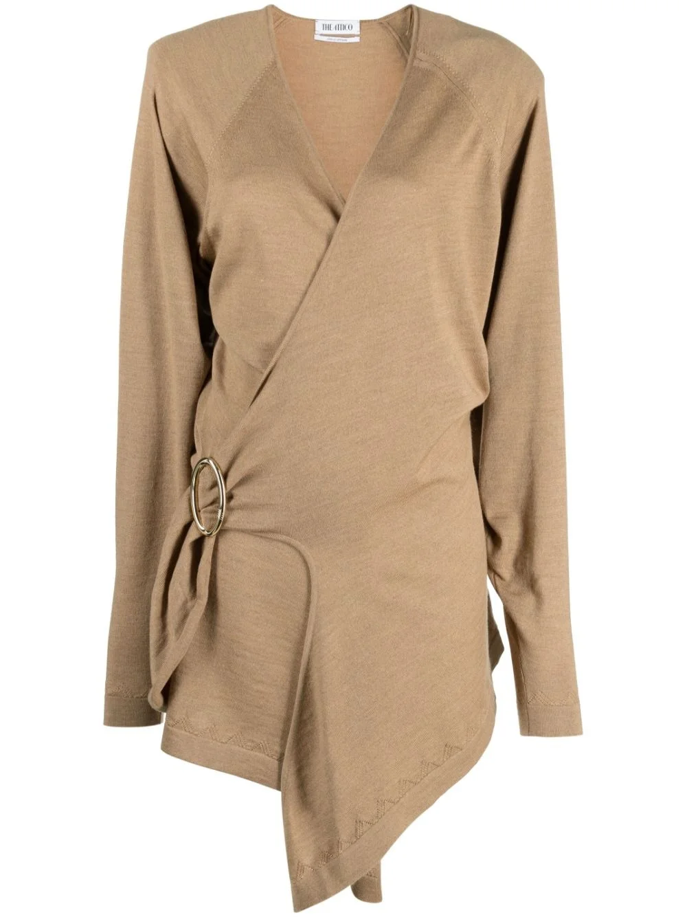 Hurely wrap minidress This Hurley minidress evokes The Attico’s penchant for classic silhouettes with a twist. It’s spun from camel wool and defined by the asymmetric wrap front that’s secured with a gold-tone O-ring. Highlights - Camel brown - Wool - Knitted construction - Decorative buckle detail - Wrap design - V-neck - Long sleeves - Thigh-length - Asymmetric hem Made in Italy Composition Outer: Wool 100% Lining: Acetate 60%, Viscose 40% SIZE & FIT Model measurements Height 5 ft 11 in(1.8 m) Bust/Chest 34.25 in(87 cm) Hips 35.82 in(91 cm) Waist 24.8 in(63 cm) FittingInformation Designed for a wraparound style that can be adjusted to your preference The internal shoulder pads offer a structured shape Made with a midweight knit, this piece offers some stretch This piece fits true to size – take your usual size Measurement SLEEVE LENGTH 25 in(63.5 cm) HIPS 32 in(81.3 cm) LENGTH 35.51 in(90.2 cm) WAIST 27.99 in(71.1 cm) BUST 42 in(106.7 cm) Washing instructions Hand Wash
