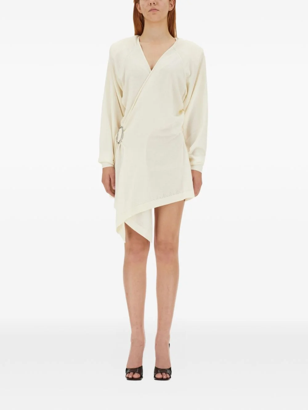 Hurely wrap V-neck mini dress Highlights - White - V-neck - Long sleeves - Buckle detail - Draped design - Asymmetric hem Made in Italy Composition Wool 100% Washing instructions Read Manufacturer Guidelines