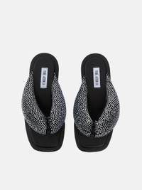 ''Indie Max'' thong in black suede with hotfixed strass application. Made in Italy. Style 247WS814TL08627 SIZE & FIT Model wears size 39. DETAILS Main leather: 100% goat leather dyed, capra hircus farm raised coo: Africa, second material: 100% strass glass, insole and lining: 100% goat leather dyed, capra hircus hircus farm raised coo: India, sole: 100% thermoplastic polyurethane. Heel flat.