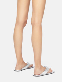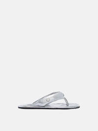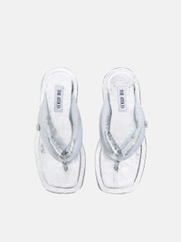 ''Indie'' flat thong in silver craquele'' laminated leather. Made in Italy. Style 247WS797L070002 SIZE & FIT Model wears size 39. DETAILS Main leather: 100% lamb leather dyed, ovis aries farm raised coo: South Africa, insole and lining: 100% lamb leather dyed, ovis aries farm raised coo: South Africa, sole: 100% thermoplastic polyurethane. Heel flat.