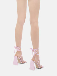 ''Isa'' lace-up sandal in sugar pink nappa leather with pyramid heel, height 115mm. Style 232WS623L001432 SIZE & FIT The model is wearing a size 39. DETAILS Main leather 70%: 100% lamb leather dyed, ovis aries aries farm raised coo: South Africa, second fabric 30%: 100% polivinilcloruro, insole and lining: 100% goat leather dyed, capra hircus farm raised coo: India, sole: 100% bovine leather dyed, bos taurus farm raised coo: France, heel 115mm - style WS623L001432