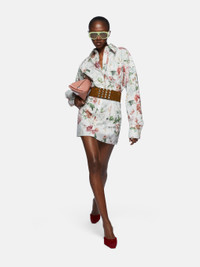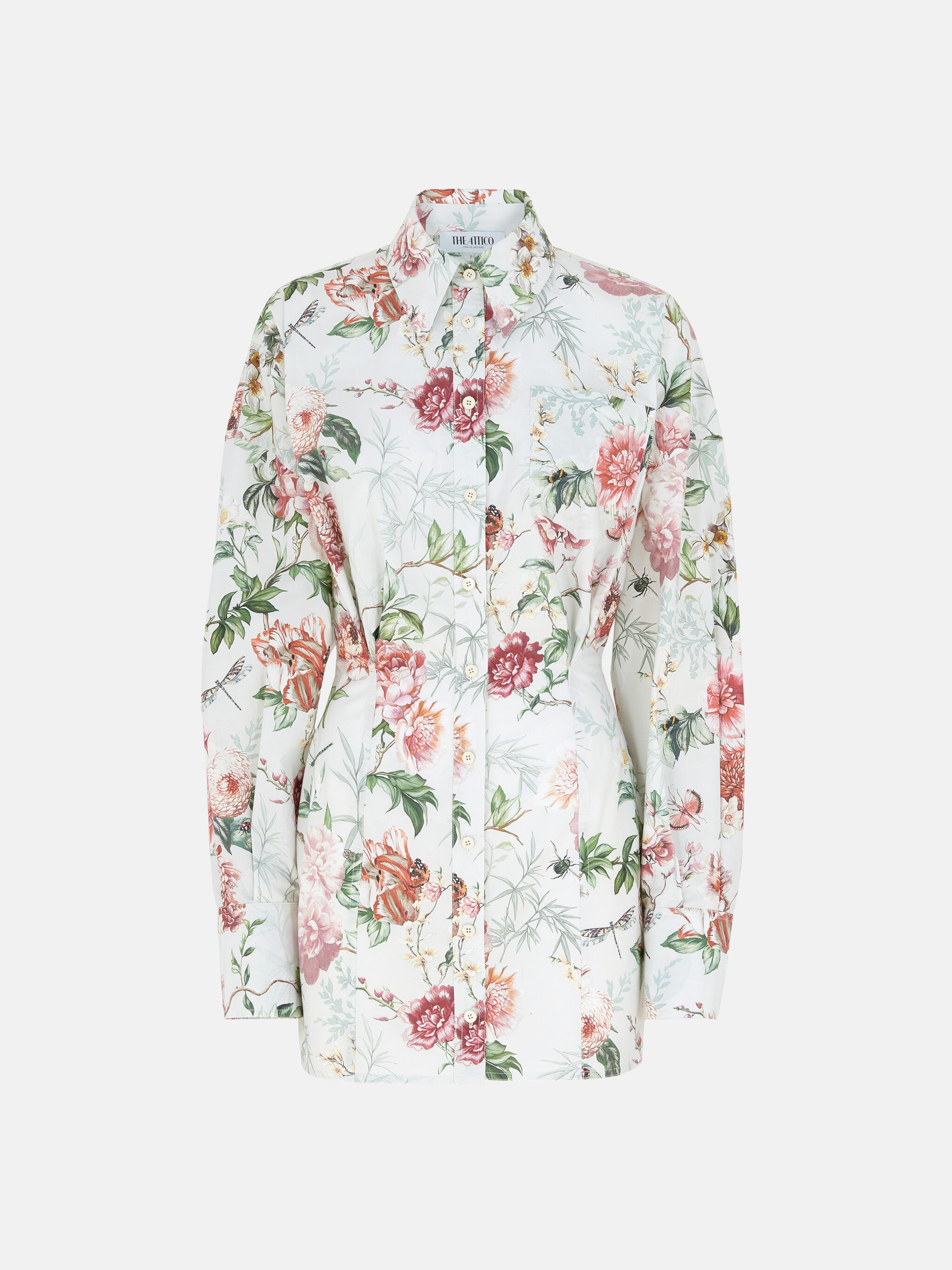 Mini shirt dress in ivory flowers print popeline. Made in Italy. Style 250WCA00384CCC053PR507 SIZE & FIT The model is wearing a size 40 and her height is 69,6 in, bust 30,7 in, waist 23,2 in, hips 34,6 in - height 177 cm, bust 78 cm, waist 59 cm, hips 88 cm. Regular fit. We recommend taking your true size. DETAILS Main Material: 100% cotton