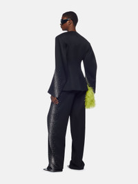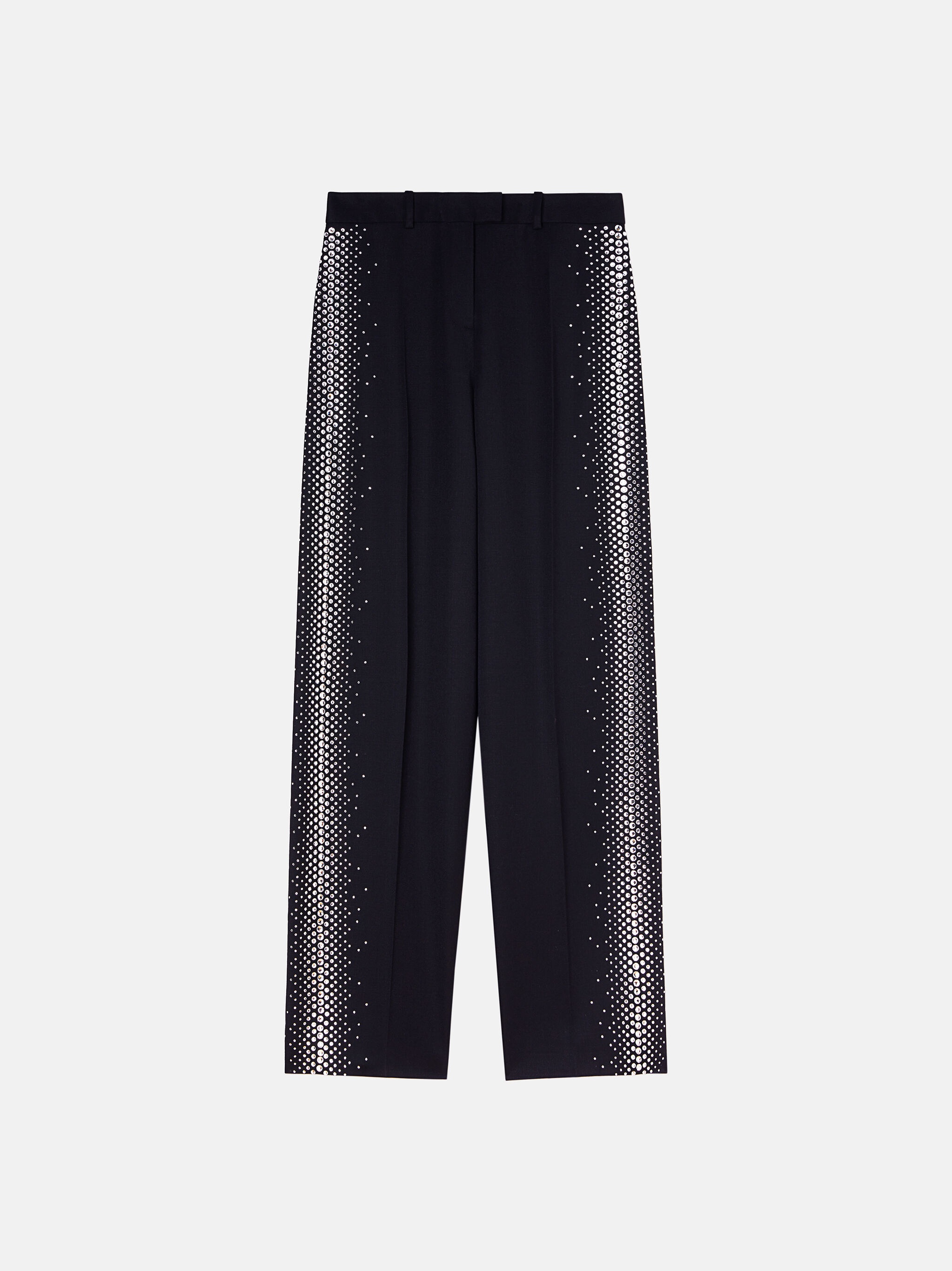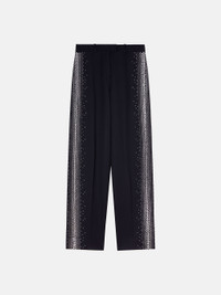 ''Jagger'' long pants in black gabardine with silver thermostrass. Style 241WCP43W046T065 SIZE & FIT The model is wearing a size 40 and her height is 177 cm, bust 80 cm, waist 60 cm, hips 88 cm. Regular fit. We recommend taking your true size. DETAILS Main fabric: 100% virgin wool, lining: 100% viscose, belt: 100% cotton