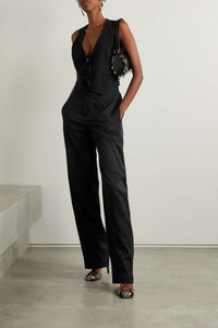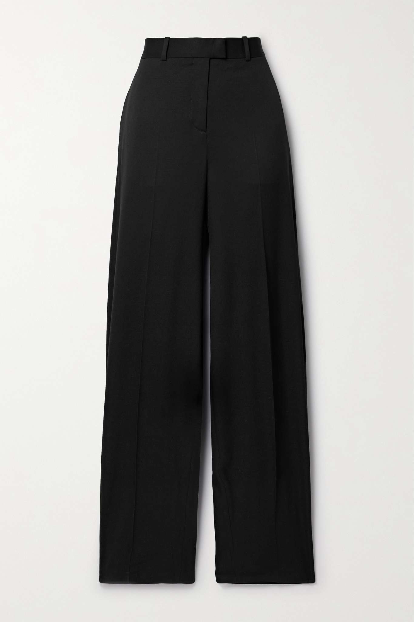 EDITORS'NOTES The Attico is known for its dramatic attire, but these 'Jagger' pants prove even the label's simpler pieces have the same impact. They're tailored from wool-blend twill in a straight cut and traced with elongating pressed creases through the legs. Loafers will round off office looks nicely, while sparkly mules complement evening outfits. SIZE & FIT - Fits true to size, take your normal size - High-rise, tailored for a straight-leg fit - Mid-weight, slightly stretchy fabric - Model is 175cm/ 5'9" and is wearing an IT 40 DETAILS & CARE - Black stretch-wool twill - Concealed button, hook and zip fastening at front - 98% wool, 2% elastane; trim: 100% cotton; lining: 100% cupro - Dry clean