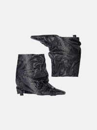 "Juno'' ankle boot in black and grey python printed leather, height 95mm. Made in Italy. Style 250WSH00847LBT003PR693 SIZE & FIT Model wears size 39. DETAILS Main Leather:100% calf leather dyed, bos taurus farm raised coo: Uganda, Insole and Lining: 100% goat leather dyed, capra hircus farm raised coo: India, Sole: 100% bovine leather dyed, bos taurus farm raised coo: Europe, Heel 95mm.