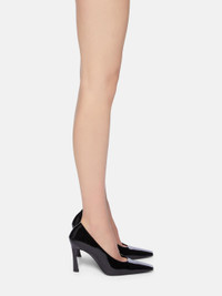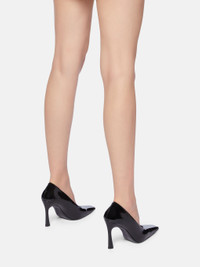 Juno'' pump in black patent leather, height 95mm. Made in Italy. Style 250WSH00846EEE056AA100 SIZE & FIT Model wears size 39. DETAILS Main Material: 53% polyurethane 23% cotton 24% polyester dyed, Insole and Lining: 100% goat leather dyed, capra hircus farm raised coo: India, Sole: 100% bovine leather dyed, bos taurus farm raised coo: Europe, Heel 95mm.