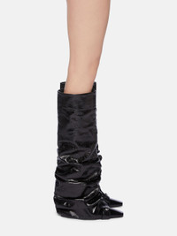 Juno'' knee-high boot in chocolate calf leather, height 95mm. Made in Italy. Style 250WSH00848LBT110AA100 SIZE & FIT Model wears size 39. DETAILS Main Leather: 100% calf leather dyed, bos taurus farm raised coo: Europe/Australia/USA, Insole and Lining: 100% goat leather dyed, capra hircus farm raised coo: India, Sole: 100% bovine leather dyed, bos taurus farm raised coo: Europe, Heel 95mm.
