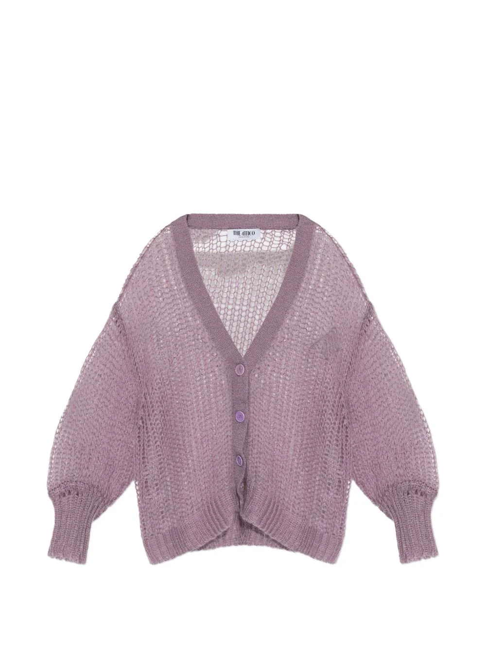 knitted cardigan Highlights - Mauve - Knit design - V-neck - Button fastening - Long sleeves - Ribbed cuffs Made in Italy Composition Mohair 50%, Polyamide 32%, Wool 18% Washing instructions Read Manufacturer Guidelines