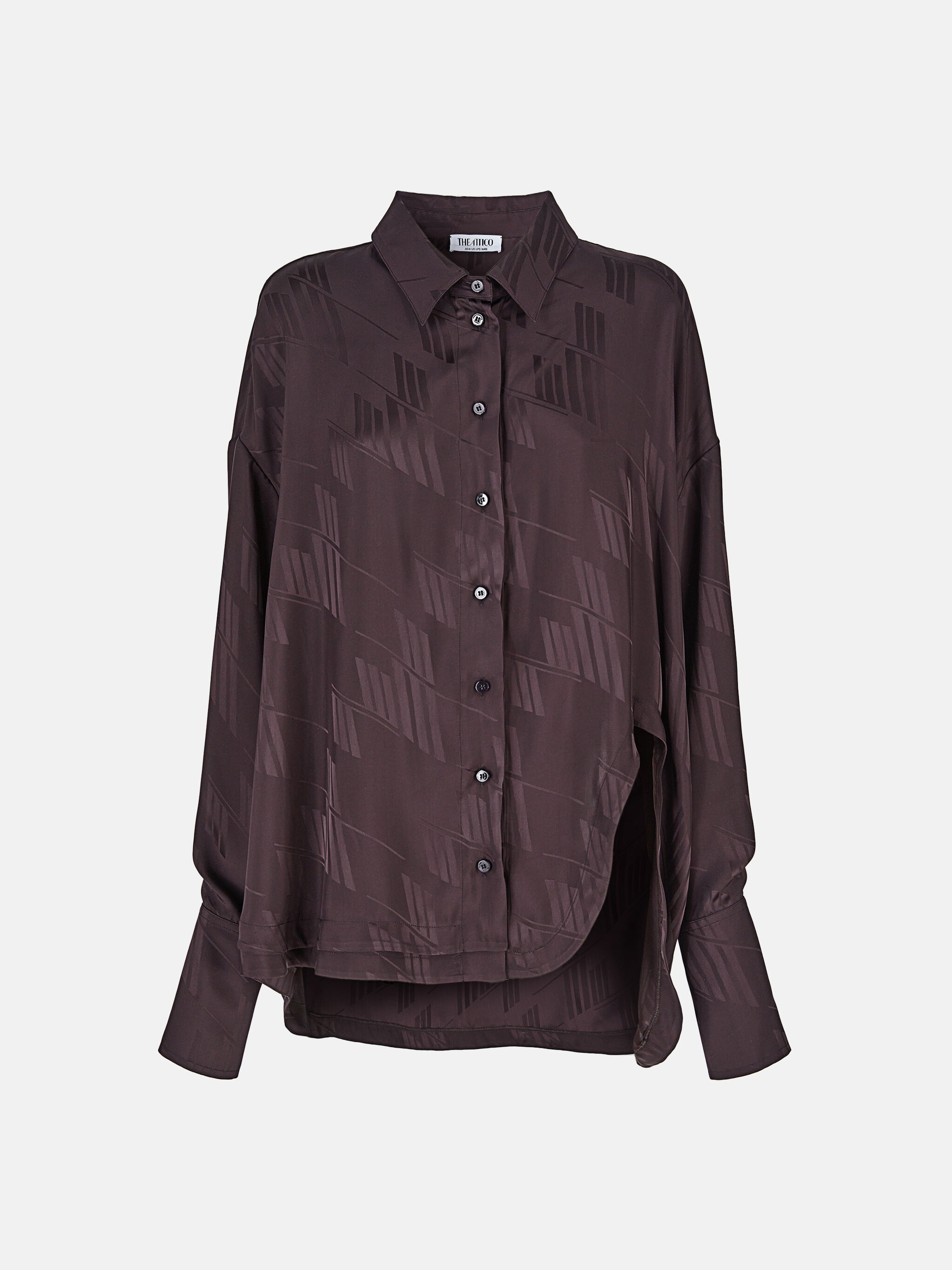 'Kota'' oversize shirt in dark brown fluid pied de poule logo with back opening. Made in Italy. Style 236WCH11V053204 SIZE & FIT The model is wearing a size 40 and her height is 70,4 in, bust 30,7 in, waist 21,6 in, hips 34,6 in - height 179 cm, bust 80 cm, waist 60 cm, hips 90 cm. Relaxed, oversized fit. We recommend taking one size smaller. DETAILS Main fabric: 100% viscose