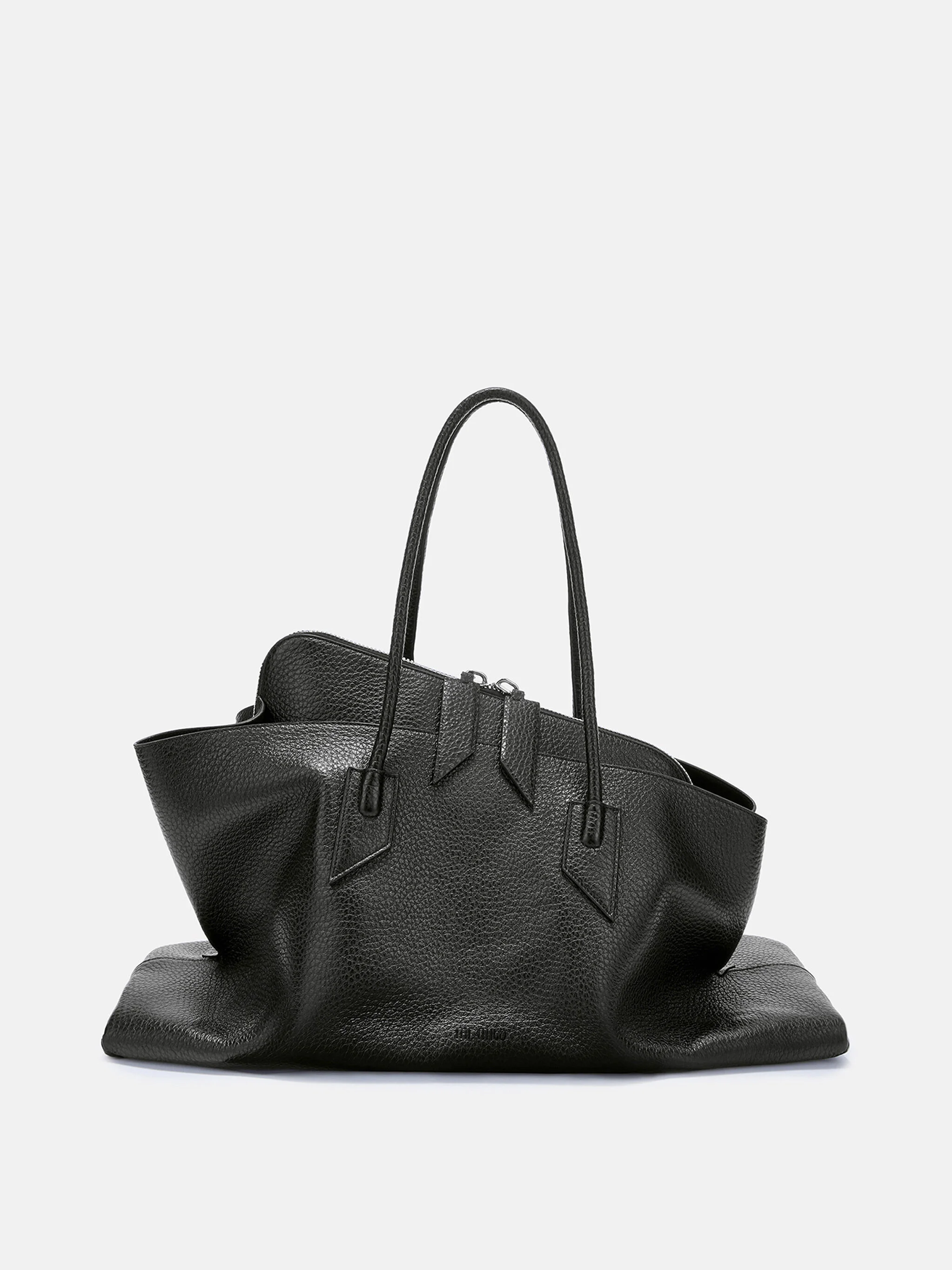 ''La Passeggiata Large'' top handle bag in black grained leather, internal zip pocket and tubular handles. Made in Italy. Style 250WAH00057LBT117AA100 SIZE & FIT Height 22,8 inch, width 23,6 inch, depth 9,8 inch - Height 57 cm, width 59 cm, depth 24 cm DETAILS Main leather: 100% calf bos taurus farm raised coo: extra European raw hides, lining: suede bos taurus farm raised coo: Italy, inside pocket: 100% calf bos taurus farm raised coo: extra European raw hides.