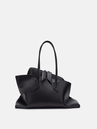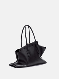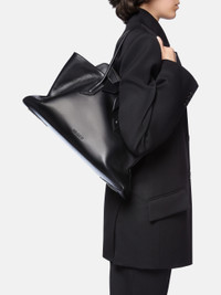 ''La Passeggiata Medium'' top handle bag in black leather, internal zip pocket and tubular handles. Made in Italy. Style 250WAH00054LBT019AA100 SIZE & FIT Height 10,23 inch, width 16,7 inch, depth 6,3 inch - Height 26 cm, width 42,5 cm, depth 16 cm DETAILS Main Leather: 100% calf bos taurus farm raised coo: Europe, lining: suede bos taurus farm raised coo: Italy, Inside pocket: 100% calf bos taurus farm raised coo: Europe.