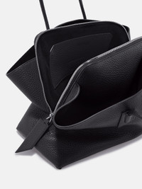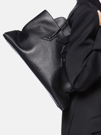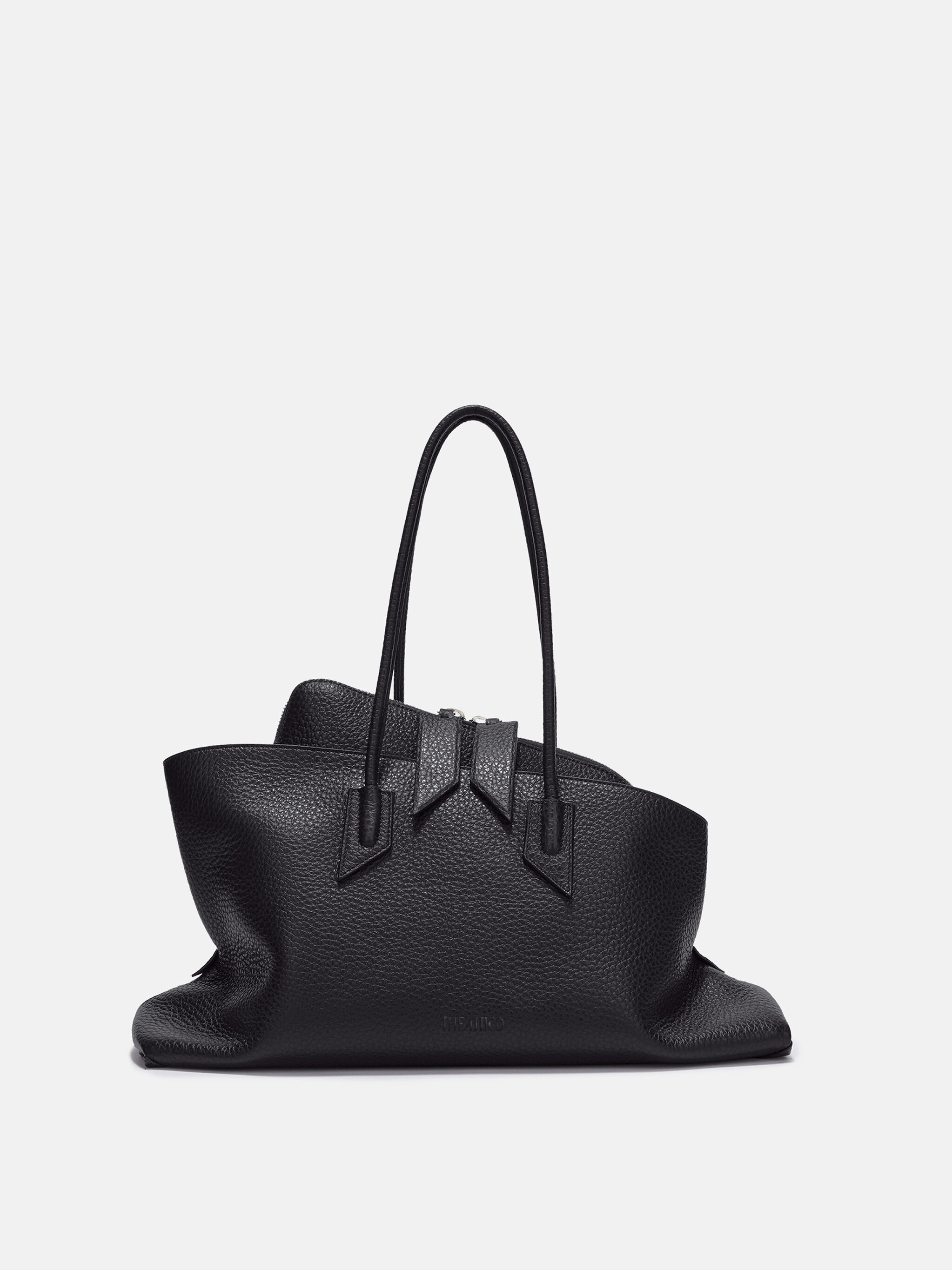 "La Passeggiata Medium" top handle bag in black grained leather, internal zip pocket and tubular handles. Made in Italy. Style 250WAH00054LBT117AA100 SIZE & FIT Height 10,23 inch, width 16,7 inch, depth 6,3 inch - Height 26 cm, width 42,5 cm, depth 16 cm DETAILS Main Leather: 100% calf bos taurus farm raised coo: SudAfrica, Lining: suede bos taurus farm raised coo: Italy, Inside pocket: 100% calf bos taurus farm raised coo: extra European raw hides.