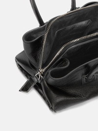 ''La Passeggiata Mini'' top handle in dark grey crackled laminated leather with removable strap. Made in Italy. Style 260WAH00063LBT070AA233 SIZE & FIT Height 8.86 inch, Width 9.06 inch, Depth 6.30 inch - Height 22.5 cm, width 23 cm, depth 16 cm DETAILS Main Leather: 100% calf bos taurus farm raised coo: Europe/Australia, lining: 51% polyurethane, 49% (70% cotton 30% polyester), inside pocket: 100% calf bos taurus farm raised coo: Europe/Australia.
