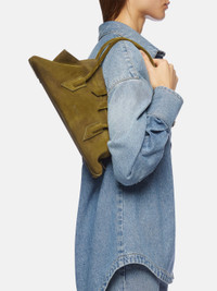 ''La Passeggiata Small'' top handle bag in khaki suede brushed leather, internal zip pocket and tubular handles. Made in Italy. Style 250WAH00058LBT108AA853 SIZE & FIT Height 14,6 inch, width 14,6 inch, depth 4,3 inch - Height 37 cm, width 37 cm, depth 11 cm DETAILS Main leather: 100% suede bos taurus farm raised coo: Italy, lining: suede bos taurus farm raised coo: Italy, inside pocket: 100% calf bos taurus raw crust origin coo: Italy.