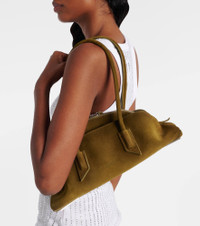 The Attico’s message is simple – it’s time to dress up. The La Passeggiata Small tote bag is crafted from suede and boasts the brand's hallmark, asymmetric silhouette. Product Details - Material: leather (suede) - Lining: suede - Made in Italy - Designer color name: Khaki - Item color: green - Closure: two-way zipped top - Top handles - Hardware color: silver - Protective feet - Internal details: card slot - front and back slot pocket - Item number: P01063969 Size & Fit - Max. height 17cm-6.5" - Max. width 34cm-13.5" - Max. depth 9,5cm-3.5" - Length of handles 57cm-22.5"
