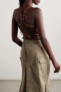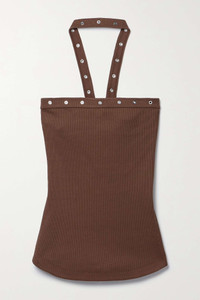 EDITORS'NOTES The Attico's top is designed with a unique halter neckline that mimics a choker. Made from ribbed cotton-jersey for a close, comfortable fit, it's traced with silver-tone eyelets and has adjustable ties at the open back. Tuck it into a midi skirt or jeans. SIZE & FIT - Fits true to size, take your normal size - Intended for a close fit - Ties at the back for an adjustable fit - Lightweight, stretchy fabric - Model is 175cm/ 5'9" and is wearing an IT 38 DETAILS & CARE - Brown cotton-jersey - Ties at back - 100% cotton - Machine wash - Designer color: Chocolate