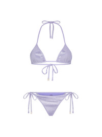Bikini in lavander glossy lycra with triangle top, strings and metallic logo ends. Style 233WBB11PA32287 SIZE & FIT The model is wearing a size S and her height is 181 cm, bust 83 cm, waist 62 cm, hips 89 cm. Regular fit. We recommend taking your true size. DETAILS Main fabric: 87% polyamid 13% elastane, lining: 84% polyamid 16% elastane