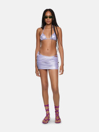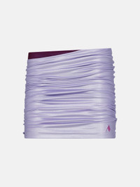 Gathered mini skirt in lavander glossy lycra with embroidered logo. Style 233WBB09PA32287 SIZE & FIT The model is wearing a size S and her height is 181 cm, bust 83 cm, waist 62 cm, hips 89 cm. Regular fit. We recommend taking your true size. DETAILS Main fabric: 87% polyamid 13% elastane, lining: 84% polyamid 16% elastane