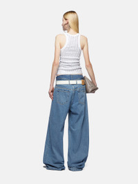 Long pants baggy in light blue denim with incorporated shorts and folded fifth poket. Made in Italy. Style 247WCP190D049176 SIZE & FIT The model is wearing a size 26 and her height is 69,6 in, bust 30,7 in, waist 23,2 in, hips 34,6 in - height 177 cm, bust 78 cm, waist 59 cm, hips 88 cm. Regular fit. We recommend taking your true size. DETAILS Main material: 100% cotton, lining: 65% polyester 35% cotton