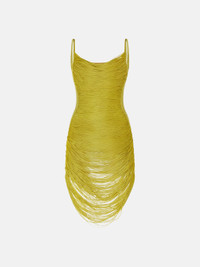 Mini dress in light green knitted viscose fringes. Made in Italy. Style 250WCA00433KVV015AA131 SIZE & FIT The model is wearing a size 40 and her height is 5,10 in, bust 33,5 in, waist 24 in, hips 34,5 in - height 179 cm, bust 85 cm, waist 61 cm, hips 88 cm. Regular fit. We recommend taking your true size. DETAILS Main material: 83% viscose 17% polyamide, lining: 87% cotton 13% polyamide