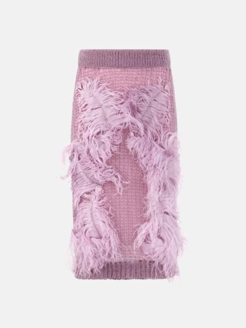 Midi skirt in light mauve light mohair with feathers. Made in Italy. Style 260WCS00294KMX002FS864 SIZE & FIT The model is wearing a size 40 and her height is 179 cm, bust 80 cm, waist 60 cm, hips 88 cm - Height 5,10 in, bust 31,4 in, waist 23 in, hips 35 in. Regular fit. We recommend taking your true size. DETAILS Main material: 46% mohair 36% polyamide 17% wool 1% elastane, lining: 100% polyester, second material: 100% ostrich feathers (struthio camelus australis) farma raised coo: South Africa, embroidery: 48% mohair 35% polyamide 17% wool