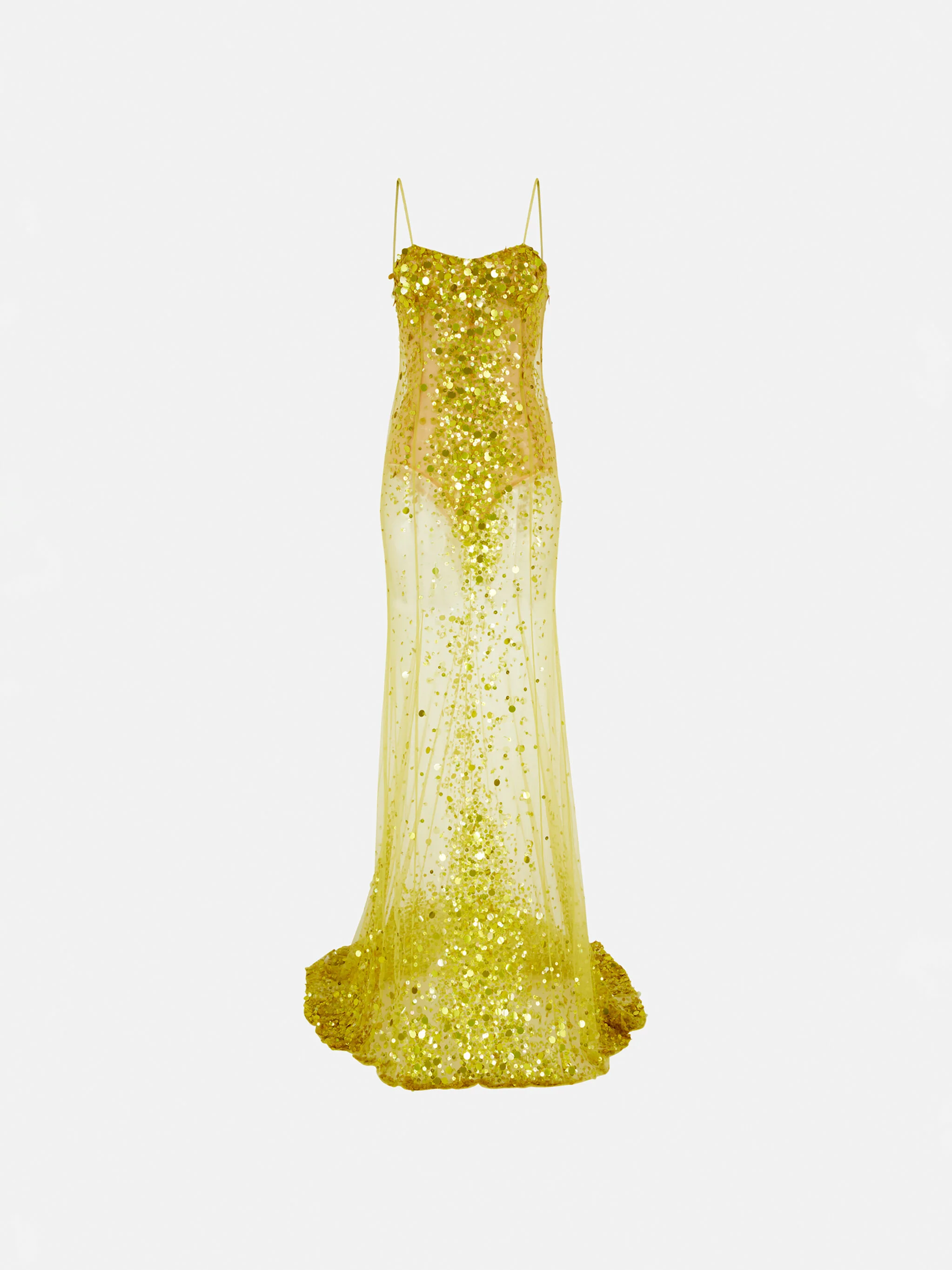 Long dress in lime multishades tulle with embroidered sequins. Made in Italy. Style 260WCW00265PLL012SQ570 SIZE & FIT The model is wearing a size 40 and her height is 179 cm, bust 80 cm, waist 60 cm, hips 88 cm - Height 5,10 in, bust 31,4 in, waist 23 in, hips 35 in. Regular fit. We recommend taking your true size. DETAILS Main material: 100% polyamide, second material: 69% polyamide 31% elastane, embroidery: 100% polyester