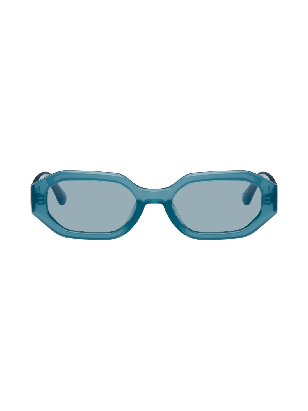 Hexagonal acetate-frame sunglasses in blue. · Tonal lenses with 100% UV protection · Integrated nose pads · Logo hardware at temples · Exposed core wire · Pouch included · Size: 54.19 140 Part of the The Attico x Linda Farrow collaboration. Supplier color: Turquoise/Turquoise