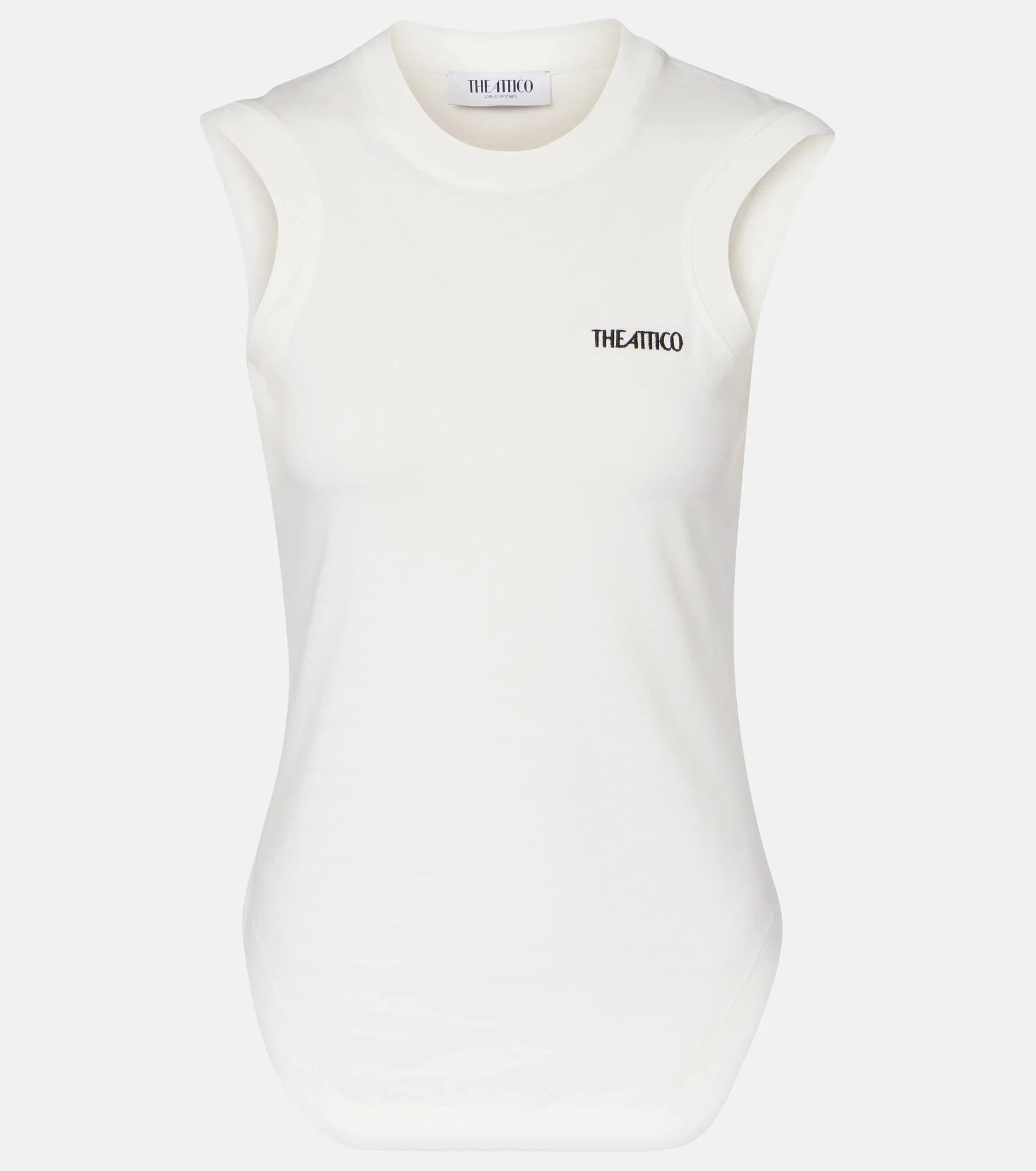 The Attico’s message is simple – it’s time to dress up. This sleeveless top is crafted from soft cotton and features a fitted silhouette with the brand's embroidered logo on the chest. Product Details - Material: 100% cotton - Care instructions: machine wash at 30 degrees - Made in Portugal - Designer color name: White - Item color: white - Item number: P01108557 Size & Fit - True to size - Cinched waist - Slightly stretchy fabric - Falls to the hip - The model seen in the picture is 178cm-5'10" and wearing a size IT 40