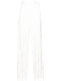 logo-jacquard trousers The Attico takes a subtle approach to logomania with these milk-white trousers. Their wide-leg silhouette is beautifully enhanced with a tonal jacquard logo motif. Highlights - Milk white - Satin weave - All-over jacquard logo motif - Pressed crease - Belt loops - Two side inset pockets - Two rear welt pockets - Concealed front button, hook and zip fastening Made in Italy Composition Outer: Viscose 100% Lining: Cotton 100% SIZE & FIT Model measurements Height 5 ft 10 in(1.77 m) Bust/Chest 33.07 in(84 cm) Hips 37 in(94 cm) Waist 24.8 in(63 cm) Washing instructions Dry Clean Only