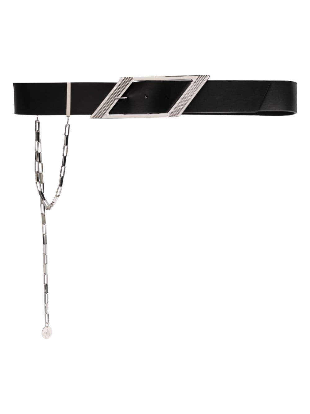 logo-pendant leather belt Highlights - Black - Calf leather - Chain-link detailing - Logo pendant - Logo-buckle detail - Buckle fastening Made in Italy Composition Outer: Calf Leather 100% Lining: Calf Leather 100% SIZE & FIT Measurement Maximum Length 31.49 in(80 cm) Minimum Length 27.55 in(70 cm) WIDTH 1.65 in(4.2 cm)