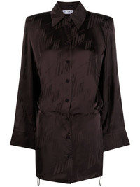 logo-print satin shirtdress This satin shirtdress from The Attico stays true to the brand's refined yet distinctive aesthetic. Imagined in a deep chocolate brown hue, the sleek construction features a subtle jacquard pattern that spotlights the brand's signature 'A' initial. Highlights - Chocolate brown - Satin finish - All-over logo print - Classic collar - Front button fastening - Drawstring fastening waist - Long wide sleeves - Straight hem Made in Italy Composition Viscose 100% SIZE & FIT Model measurements Height 5 ft 10 in(1.79 m) Bust/Chest 31.1 in(79 cm) Hips 35.03 in(89 cm) Waist 24.01 in(61 cm) FittingInformation Designed for a loose fit at the chest and waist with a close fit at the hips The internal shoulder pads offer a structured shape Made from a midweight non-stretch fabric This piece fits true to size – take your usual size Measurement SLEEVE LENGTH 25.51 in(64.8 cm) HIPS 32 in(81.3 cm) LENGTH 30.98 in(78.7 cm) WAIST 30 in(76.2 cm) BUST 35.98 in(91.4 cm) Washing instructions Dry Clean Only