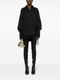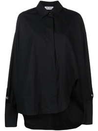 logo-stud cotton shirt Highlights - Black - Cotton - Tonal stitching - Asymmetric hem - Studded logo detail to the sleeves and rear - Embroidered logo at the chest - Oversize design - Classic collar - Concealed front button fastening - Long sleeves - Buttoned cuffs - Side slit - Rear curved hem Made in Italy Composition Cotton 100% SIZE & FIT Model measurements Height 5 ft 11 in(1.8 m) Bust/Chest 32.67 in(83 cm) Hips 36.22 in(92 cm) Waist 24.4 in(62 cm) FittingInformation Designed to be unstructured, offering a loose fit throughout Made from a midweight non-stretch fabric This piece fits true to size – take your usual size Washing instructions Machine Wash