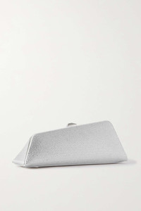 EDITORS'NOTES The Attico's sculptural, asymmetric clutch is made from smooth satin embellished with crystals. Designed to slot comfortably under your arm, it opens with a push clasp and has enough space inside to store everything you need for a night out. SIZE & FIT This item’s measurements are: - Height: 12.5cm / 4.9in - Width: 32.5cm / 12.8in - Depth: 7.5cm / 3in DETAILS & CARE - Silver satin - Push clasp fastening at top