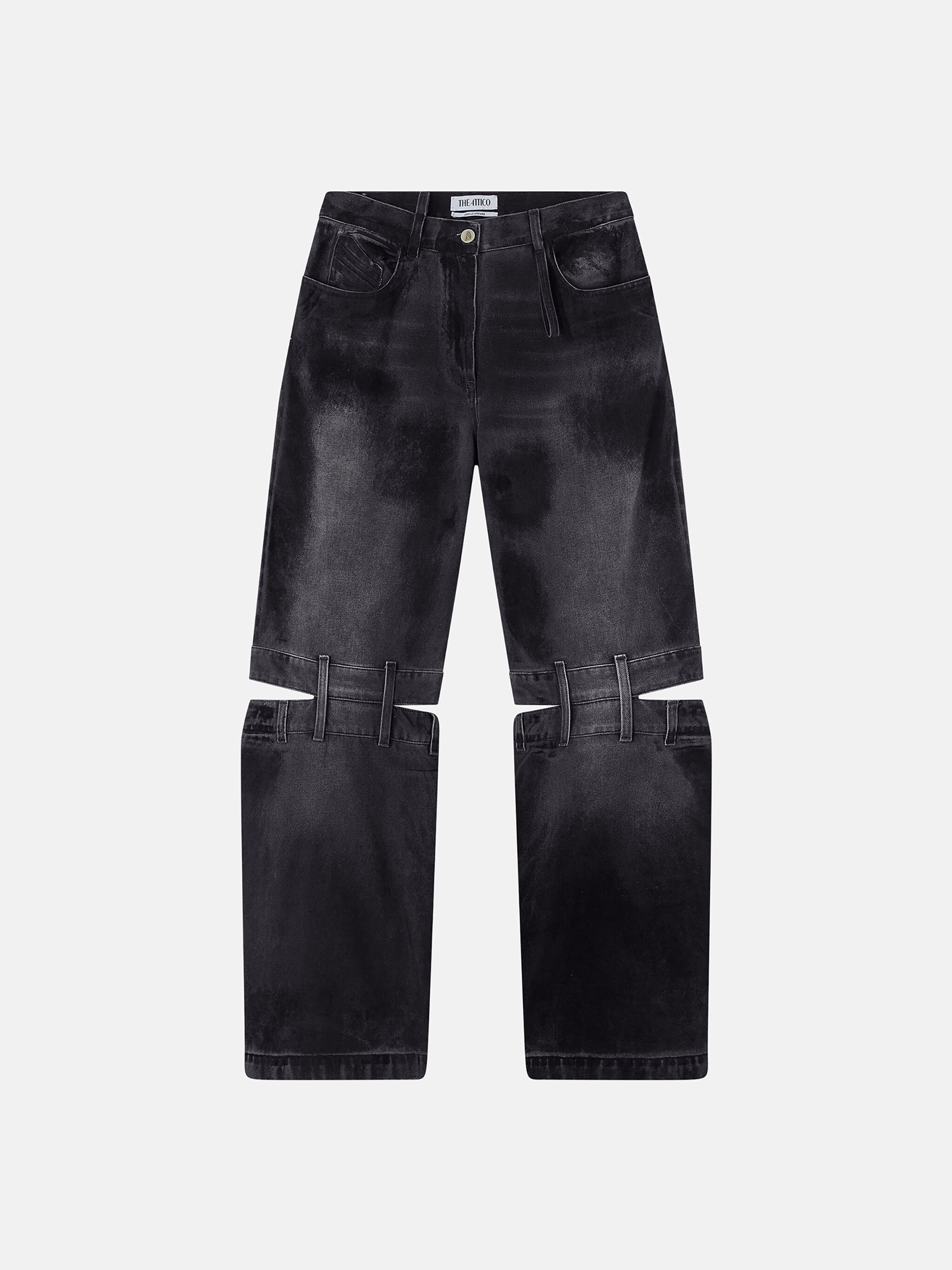 Long pants in black denim with cut out on the back, folded fifth pocket and embroidered logo. Made in Italy. Style 248WCP157D097100 SIZE & FIT The model is wearing a size 26 and her height is 69,6 in, bust 30,7 in, waist 23,2 in, hips 34,6 in - height 177 cm, bust 78 cm, waist 59 cm, hips 88 cm. Regular fit. We recommend taking your true size. DETAILS Main material: 100% cotton, lining: 65% polyester 35% cotton