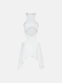 "Magnolia" crossover mini dress in white ribbed jersey with logo metal hook. Style 238WCA228J015001 SIZE & FIT The model is wearing a size 40 and her height is 70,4 in, bust 30,7 in, waist 21,6 in, hips 34,6 in - height 179 cm, bust 80 cm, waist 60 cm, hips 90 cm. Fitted style. We recommend taking one size larger. DETAILS Main fabric: 97% cotton 3% elastane, fabric 2: 73% polyamid 27% elastane