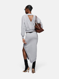 Midi skirt with slit in melange grey and beige double american fleece. Made in Italy. Style 250WCS00263JJF007AA876 SIZE & FIT The model is wearing a size 40 and her height is 69,6 in, bust 30,7 in, waist 23,2 in, hips 34,6 in - height 177 cm, bust 78 cm, waist 59 cm, hips 88 cm. Regular fit. We recommend taking your true size. DETAILS Main Material: 100% cotton, second material: 95% cotton 5% elastane