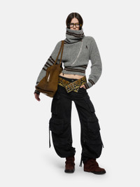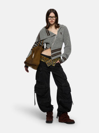 Cardigan in melange grey geometric jacquard wool mix. Made in Italy. Style 251WCD00008KWW002AA183 SIZE & FIT The model is wearing a size 40 and her height is 70 in, bust 31,1 in, waist 24 in, hips 34,6 in - height 178 cm, bust 79 cm, waist 61 cm, hips 88 cm. Relaxed, oversized fit. We recommend taking one size smaller. DETAILS Main material: 60% wool 40% polyamide