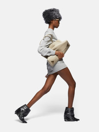 Crew neck mini dress with tight skirt in melange grey light american fleece. Made in Italy. Style 250WCA00393JJF006AA183 SIZE & FIT The model is wearing a size 40 and her height is 69,6 in, bust 30,7 in, waist 23,2 in, hips 34,6 in - height 177 cm, bust 78 cm, waist 59 cm, hips 88 cm. Regular fit. We recommend taking your true size. DETAILS Main Material: 96% cotton 4% elastane, second material: 100% cotton, Rib: 97% cotton 3% elastane