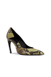 Details - Snake embossed leather upper with leather sole - Slip-on styling - Cushioned leather footbed and lining - Pointed toe - Curved stiletto heel - Approx 95mm/ 3.75 inch heel - Made in Italy - Our Style No. ATTF-WZ175 - Manufacturer Style No. 251WSH00877 - LBT003PR - 202