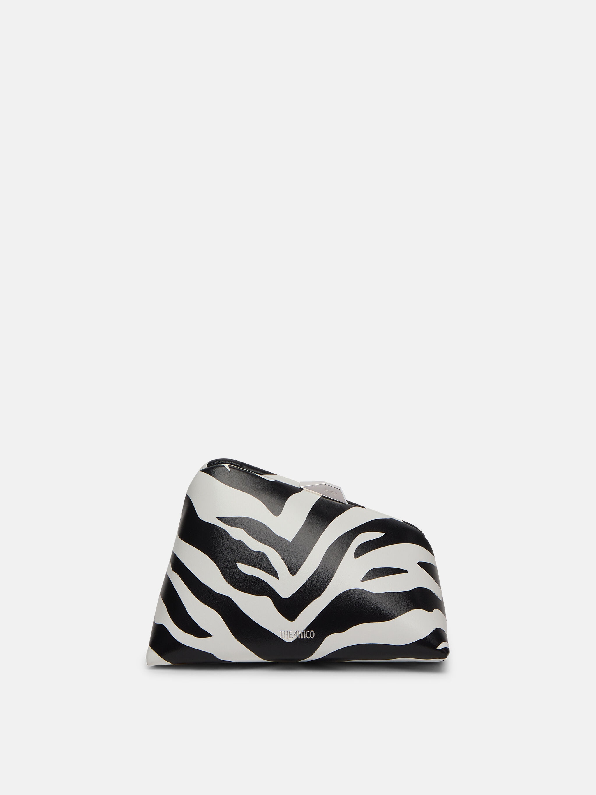 ''Midnight'' mini clutch in black and white zebra printed leather with strap. Style 227WAH40EL020020 SIZE & FIT Height 5,5 in: Width 7,5 in: Depth 4 in DETAILS Main Leather: 100% Calf (BOS TAURUS, farm raised, coo: AUSTRALIA), Lining: 51% PU, 49% (70% CO, 30% PES), Inside pocket: 100% Calf Leather (BOS TAURUS, farm raised, coo: AUSTRALIA)