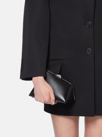 ''Midnight'' mini clutch in black calf leather with shoulder strap and hinged closure. Style 231WAH40L019100 SIZE & FIT Height 5,12 inch, width 7,3 inch, depth 3,15 inch DETAILS Main Leather: 100% calf bos taurus farm raised coo: Usa, Lining: 51% polyurethane, 49%(70% cotton 30% polyester), Inside pocket: 100% calf bos taurus farm raised coo: Usa.