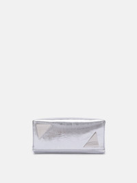 ''Midnight'' mini clutch in silver crackled laminated leather with shoulder strap and hinged closure. Made in Italy. Style 241WAH00040LBT070AA002 SIZE & FIT Height 5,12 inch, width 7,3 inch, depth 3,15 inch - height 13 cm, width 18,5 cm, depth 8 cm DETAILS Main Leather: 100% calf bos taurus farm raised coo: Europe/Australia, lining: 51% polyurethane, 49% (70% cotton 30% polyester), inside pocket: 100% calf bos taurus farm raised coo: Europe/Australia.